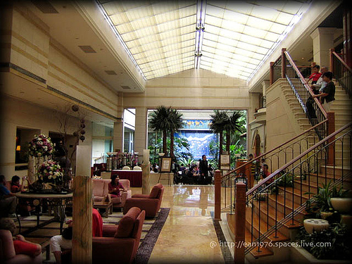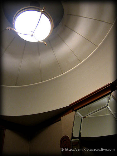 一走進大門,一樓大廳的天花板是透明的,會隨著當時光線選擇拉上遮光布幔。