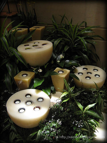 這區綠白色的設計得很好看,一盆盆白色的應該是燭台,不曉得在夜晚時點起來的效果如何