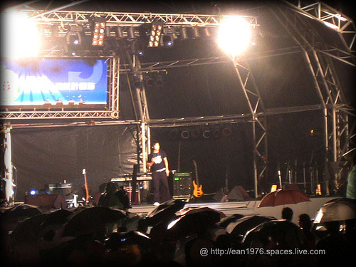 [伊恩斯社-淡水訊] 一首"妳是我的眼"不僅讓林宥嘉在星光大道節目中奠定冠軍地位,也讓原唱蕭煌奇再度翻紅!這魚幫水、水幫魚的兩位首度在淡水漁人碼頭同台合唱這首07年最火紅的經典中古歌曲!蕭煌奇展現實力穩固原唱地位,反觀林宥嘉可能除卻比賽壓力再唱這首歌似乎少了昔日螢光幕上的爆發力與感情投入程度,不過首次合作仍獲得大雨中的台下歌迷熱烈掌聲!