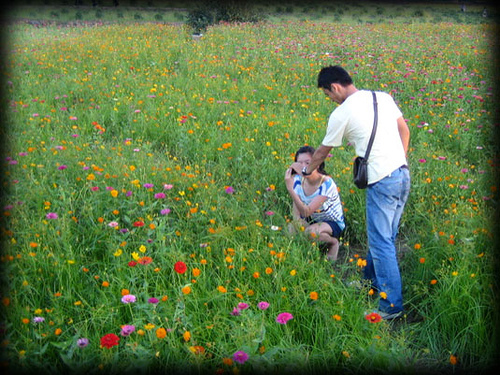 不少一家大小或儷影成雙的趁著太陽下山前最後片刻穿梭在田陌花叢間捕捉畫面。