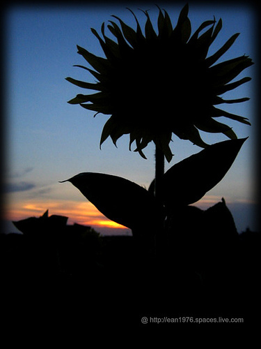 可以發現向日葵面對的是太陽升起的東方,因此西斜的夕陽在向日葵身後囉~