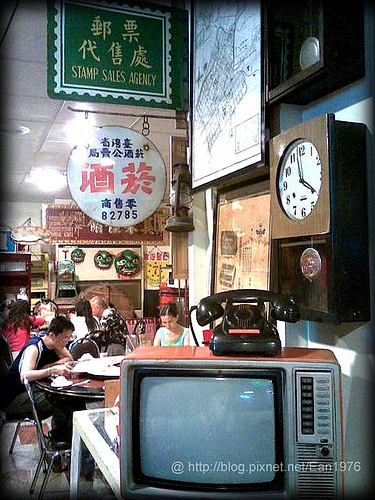 五零年代台灣味的擺設與裝潢,打從進門開始,就可看到好幾代以前的鮮紅色投幣式公共電話機掛在牆上吸引著食客目光,有點模糊的印象中還有趕上這紅色電話機的時代尾巴哩,