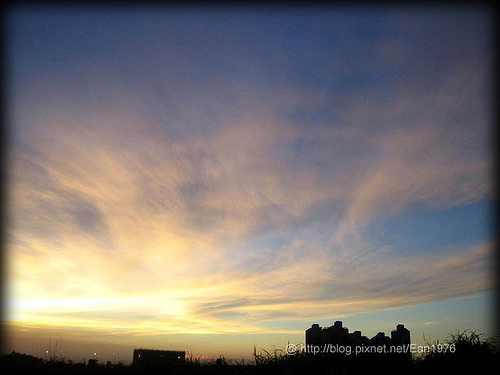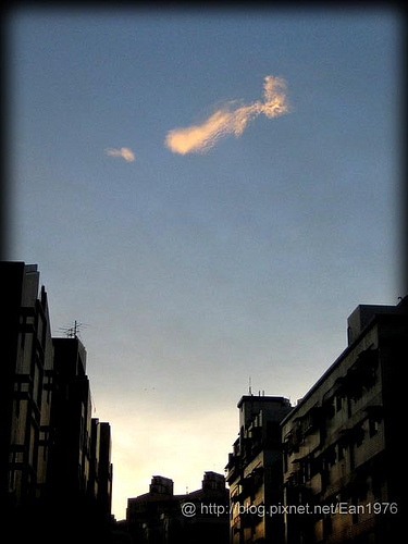 今天天氣就那麼好,騎車在淡海新市鎮內,看見大視野的黃昏天空,不禁喊著"喔~那ㄟ水機勒形的!" 哈哈~