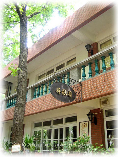 之前去逛淡江中學校園時,曾發現校門口進去沒多久的左手邊有片濃密樹林,當中有棟白牆紅瓦建築物坐落在其中,