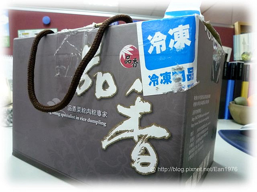 前天下班前收到這箱用低溫宅配送來的粽子,我有點傻眼,那箱子就跟中秋節送禮的柚子禮盒一樣的大!