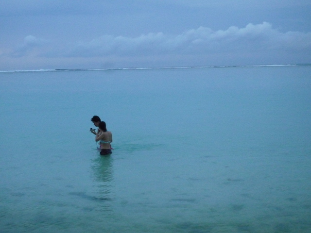 因為離沙灘遠些,儘管小心仍不免被暗黑夜裡的珊瑚礁輕碰而留下些刮痕。