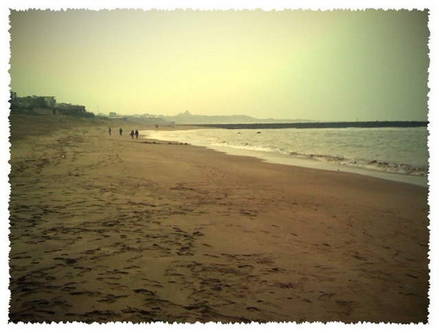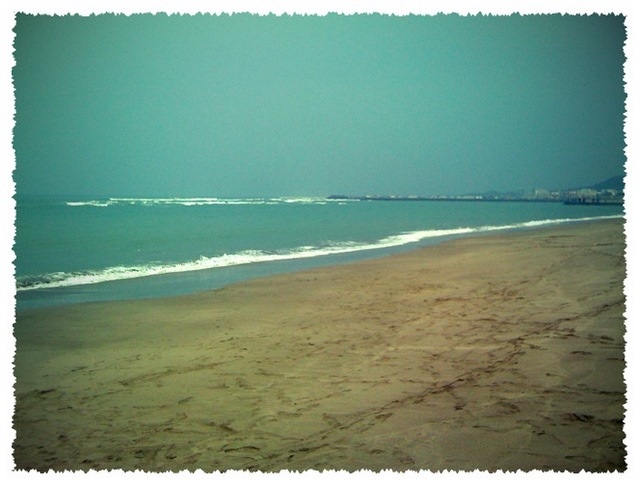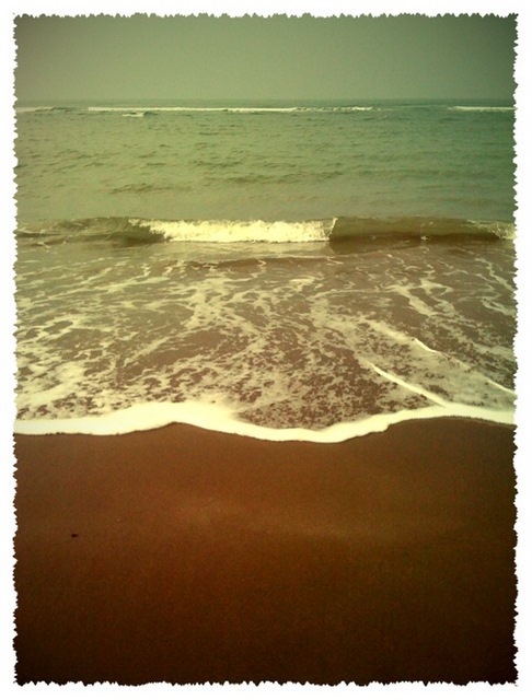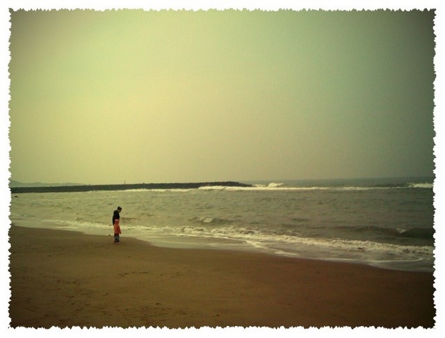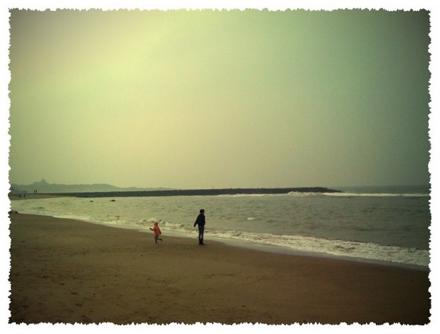 天有點灰的海邊,經過LOMO,海水顏色帶點綠又有些復古,想到范曉萱的最新專輯封面,