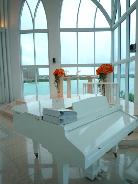 裡頭用的是純白色系的裝潢:白牆、白椅甚至還有座白鋼琴,