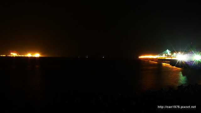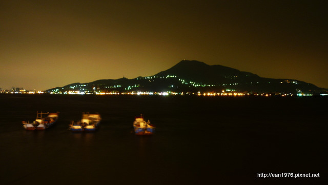 到了漁人碼頭,情人橋的照明很夠,只需一般的夜景模式就綽綽有餘,於是再到漁人碼頭入口旁的木棧長堤再拍不同角度的觀音。這下拍著拍著小有心得,可以提供參考給也想用傻瓜數位玩玩長時間曝光攝影的朋友參考。