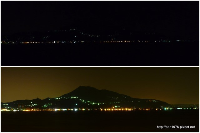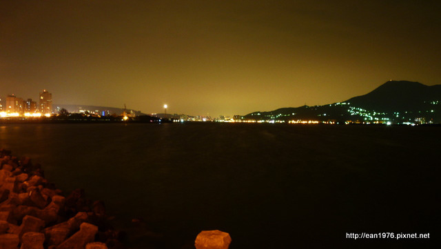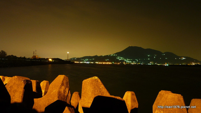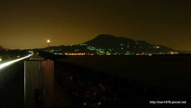 這晚當單車騎在「金色水岸自行車道」上,輪廓因在黑夜中不復鮮明的觀音山,在河的那一岸沉睡著,此情此景,很美!拿出相機想到若用「星空模式」拍起來不知道會是什麼樣子?所謂的「星空模式」就是延長拍攝的曝光時間,有15秒、30秒與60秒三種時間設定,因為不是真那麼漆黑,15秒的曝光應已足夠。拍出來的效果出乎意料的好,雖然是系出徠卡,但畢竟還是個傻瓜,能有這樣品質,真是不枉我含淚送走的那群小朋友。
