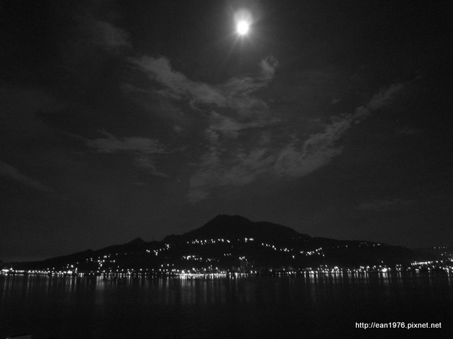近圓的月娘好亮呀,抓著相機拍照時赫然發現腳架在月光的映照下也都斜出了影子,這月光難怪可讓古代人鑿壁借來在晚上苦讀。