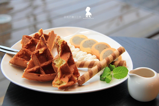 鬆餅也值得推薦,口味不錯、擺盤也賞心悅目。值得讚許的是盤中原本擔任配角、酥軟的紫色圓心薰衣草餅乾很搶戲,無論是口感或散發在口腔內的香草氣息,都屬上乘。