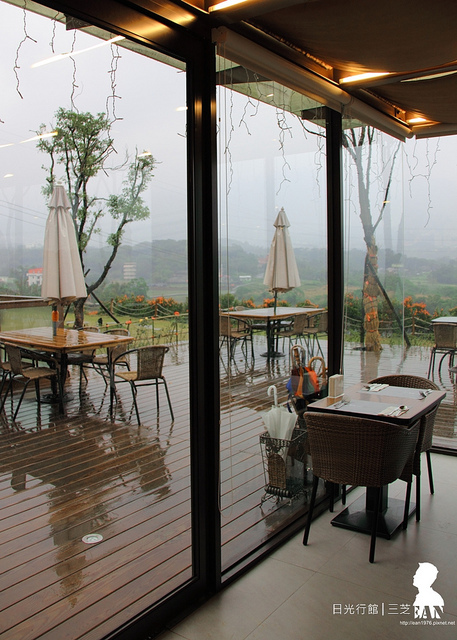 日光行館除了是咖啡店、是餐廳,同時也是棟民宿,從外頭看房間畫開了大面窗戶,不用遠赴清淨農場也能一攬層層山景,是值得考慮的淡水度假住宿點。