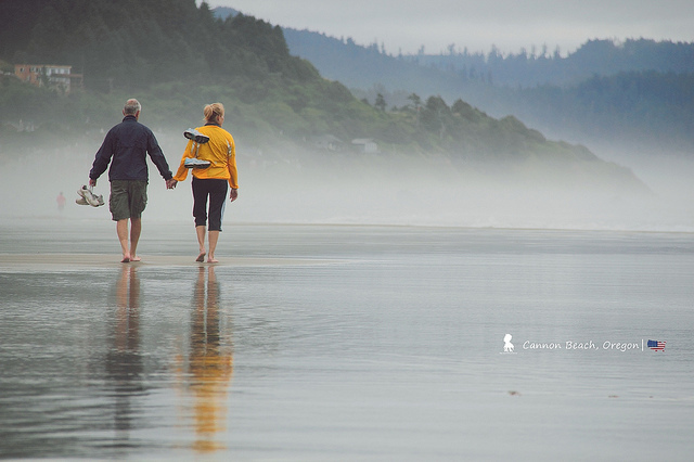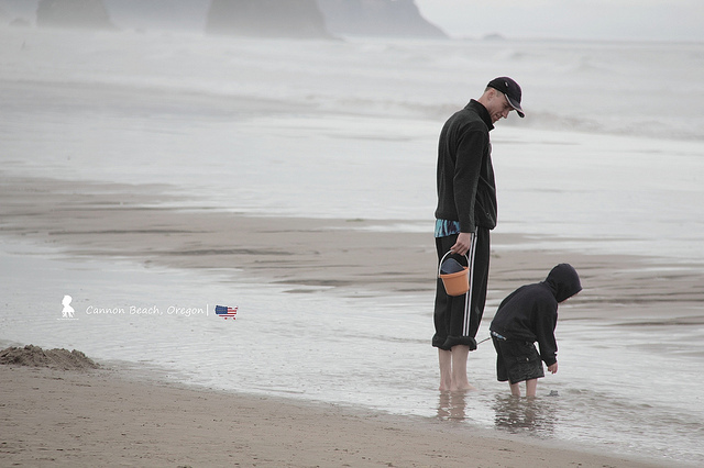 我覺得很厲害的景色還有下山後第三天所去、位於太平洋海濱的Cannon Beach。在延綿好幾公里的沙灘上矗立著幾塊巨石,那風景會讓人聯想到澳洲的大洋路。前往的途中天氣並沒按照先前的氣象預報依約放晴,灰濛濛甚至山頭還起了霧。朋友似乎對於這樣的天氣有些失望,我則有些竊喜說這樣的天氣也不錯,要嘛就大晴不然就是這樣有霧的天氣,最怕就是灰灰地但什麼都沒有的陰天。