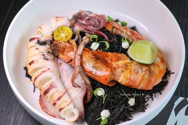 很幸運的,這餐搶先品嚐了尚未正式放上菜單的多道佳餚,除了蚵仔煎披薩,還有使用先薄炸再炒過的墨魚天使髮麵,盤中的炭烤透抽與香煎大明蝦都相當大器,重點是都非常新鮮,讓這道「黑色的美味」從麵體到海鮮,以多層次呈現絕佳口感!