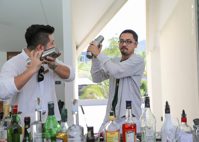 ⇑ 度假村裡提供雞尾酒課程,590 泰銖可學習兩種調酒,我學的是 Aperol Bianco
