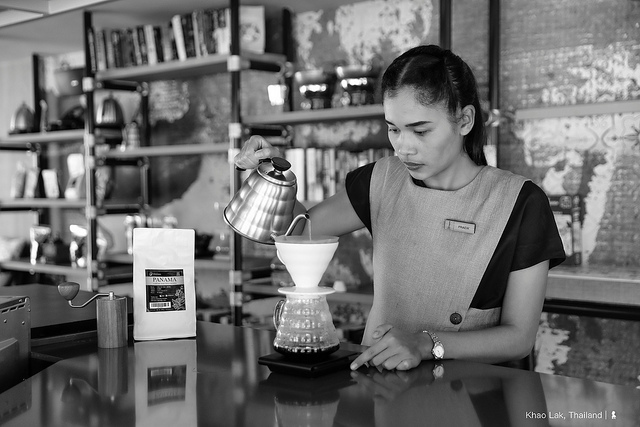 考拉以前是該區的海上貿易中心,像今日的新加坡,棉花是當時重要的貿易品項,所以度假村有間餐廳即以棉花的英文 Cotton 命名。重要性不亞於昨日棉花的貿易品項:咖啡豆,不只進口、考拉當地也有種植,不同於台灣人習慣的阿拉比卡品種,當地產的是羅布斯塔,飯店很有心想要把這間 Cotton Cafe & Library 發展成類似星巴克的咖啡實驗室、期許成為當地的咖啡中心,於是招募當地人成為夥伴來學習烘豆並推廣,相當有心。